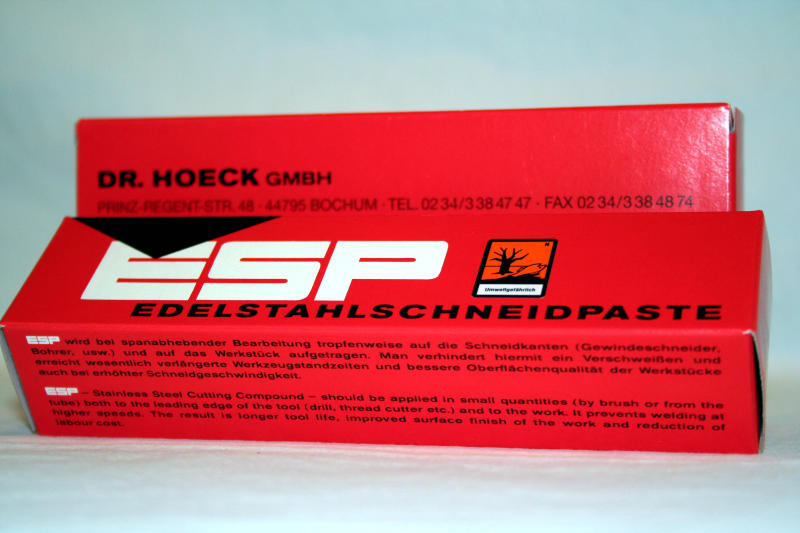 ESP ESP Edelstahl-Schneidpaste ist eine unverdünnte, aktive Paste zur Verbesserung und Beschleunigung der oft sehr schwierigen spanabhebenden (und spanlosen) Bearbeitung von